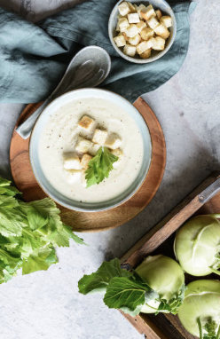- 재료: 콜라비 200g, 감자 1개, 양파 1개, 치킨스톡 500ml, 소금, 후추