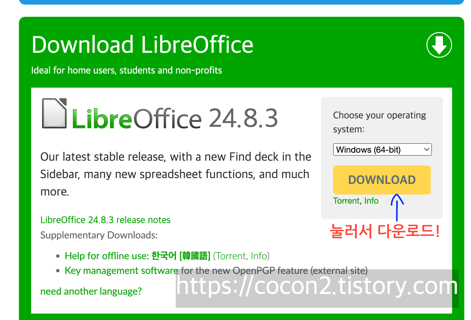- LibreOffice 공식 웹사이트에서 다운로드