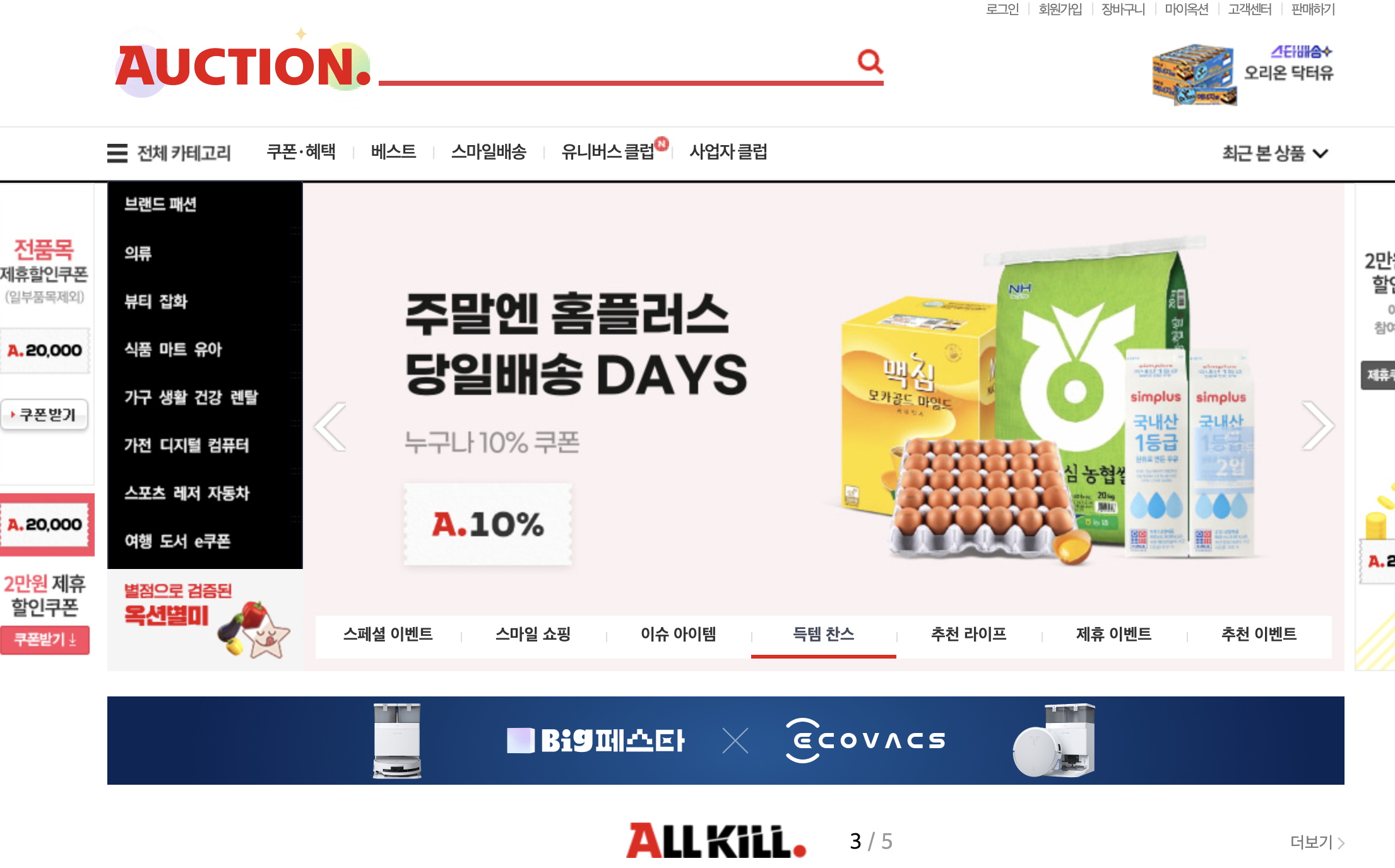 옥션은 정기적으로 다양한 이벤트와 프로모션을 진행하고 있습니다.